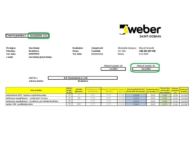 Pokiaľ vám naši zamestnanci pred samotnou objednávkou vypracovali objektovú cenovú ponuku, prípadne objednávate tovar na základe obchodnej akcie, nezabudnite uviesť číslo platnej cenovej ponuky (napr. MP1111 11), prípadne názov akciovej ponuky Weber, v rámci ktorej tovar objednávate.