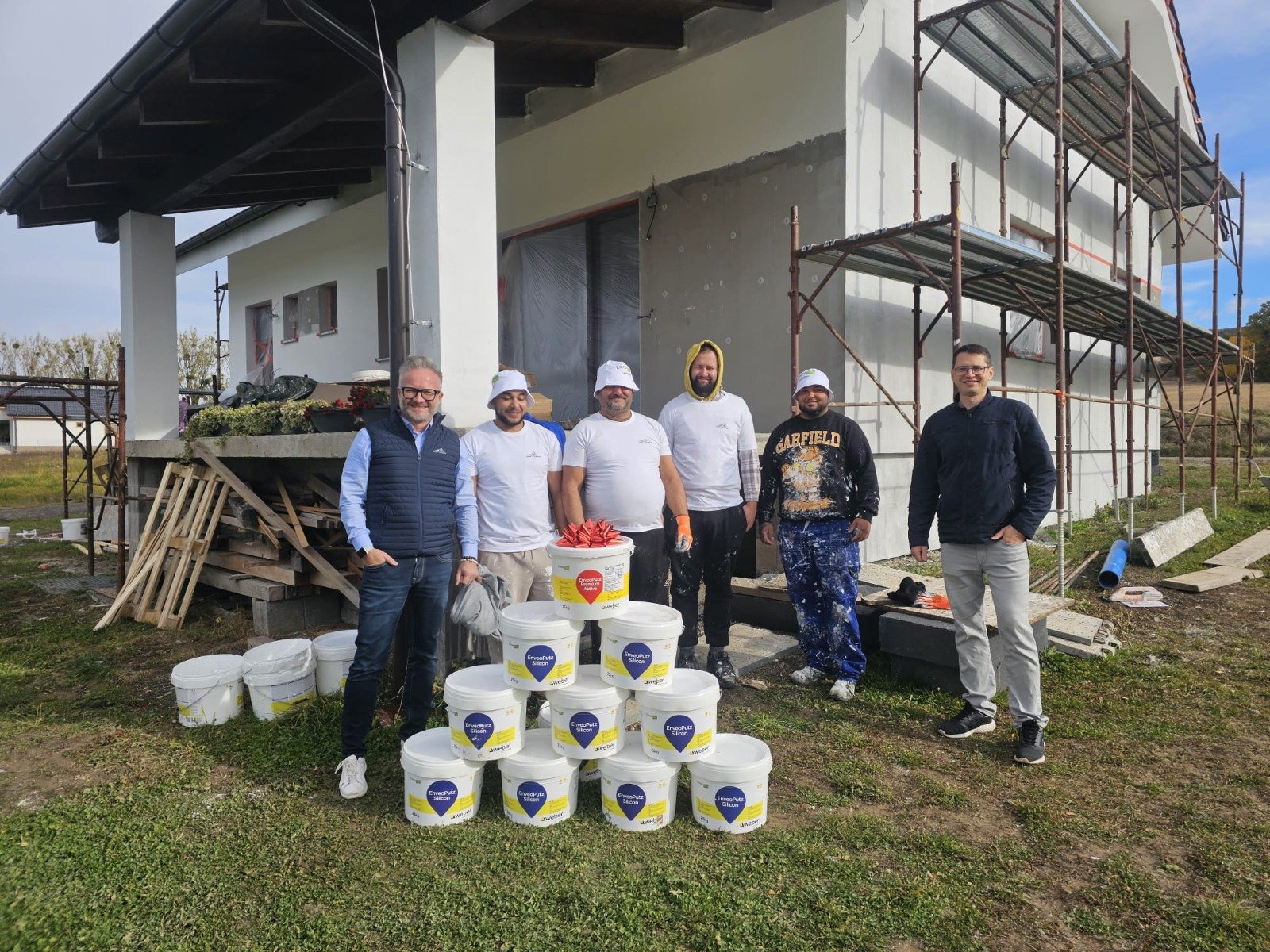 V obci Ruskov sme odovzdali výhru zo súťaže s Telekom Magenta – 15 vedier prémiovej omietky EnveoPutz 🎨