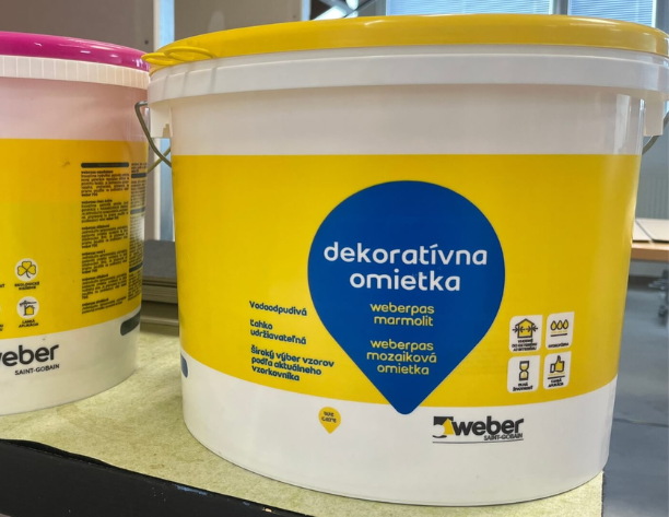 - weberpas silikónová omietka – certifikovaná rada najvyššej kvality, ktorá je vysoko hydrofóbna, má vynikajúcu paropriepustnosť a samočistiaci efekt. Je certifikovaná ako systémový komponent zatepľovacích systémoch ETICS (External Thermal Insulation Composite System).
