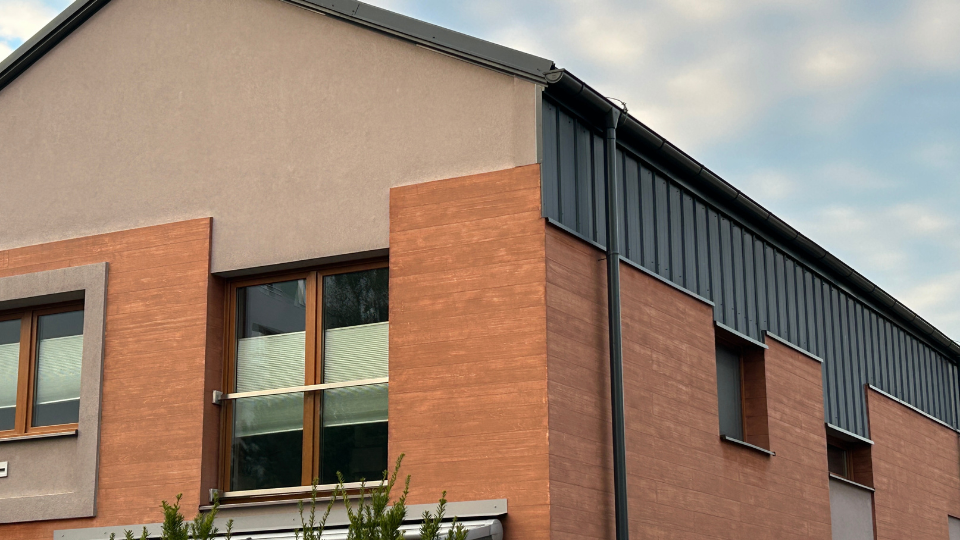 Základ tvorí zatepľovací systém ETICS weber terranova (EPS), ktorý spĺňa prísne tepelnoizolačné a technické požiadavky. Povrch je ukončený fasádnou omietkou weberpas aquaBalance, ktorá vďaka technológii aquaBalance minimalizuje riziko vzniku rias a plesní a dlhodobo udržiava fasádu čistú.