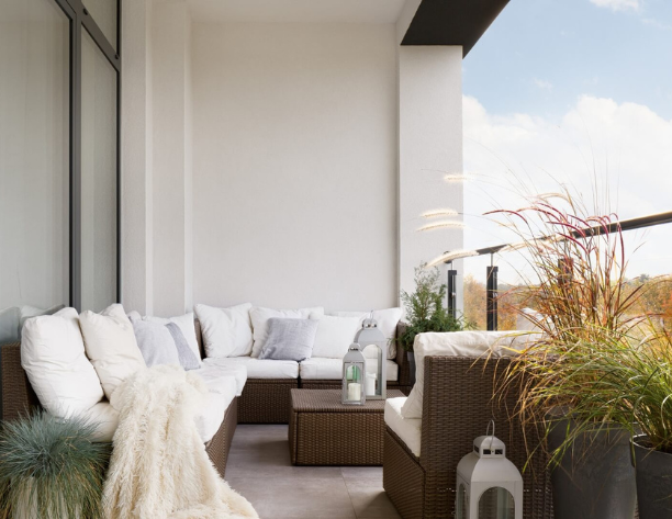 Pre dosiahnutie prirodzenej atmosféry na balkóne odporúčame zvoliť nábytok z polyetylénového ratanu alebo drevené súpravy. Majte na pamäti, že drevený nábytok si vyžaduje pravidelnú údržbu, vrátane jeho čistenia každú jar.