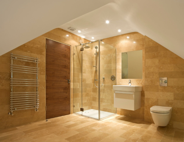Pretvorte podkrovie na praktickú a elegantnú kúpeľňu, ktorá využíva unikátne aspekty strešného priestoru. Tento priestor môže poslúžiť ako hlavná kúpeľňa domu alebo ako súkromná kúpeľňa pre hosťovskú izbu v podkroví. Využitím strešných okien získate dostatok prirodzeného svetla a možnosť ventilácie, čo je v kúpeľniach veľmi dôležité. Rozloženie je kľúčové, pričom sanitárne vybavenie a úložné priestory je potrebné umiestniť s ohľadom na dostupný priestor a sklon strechy.