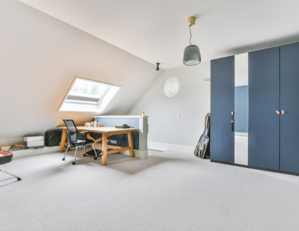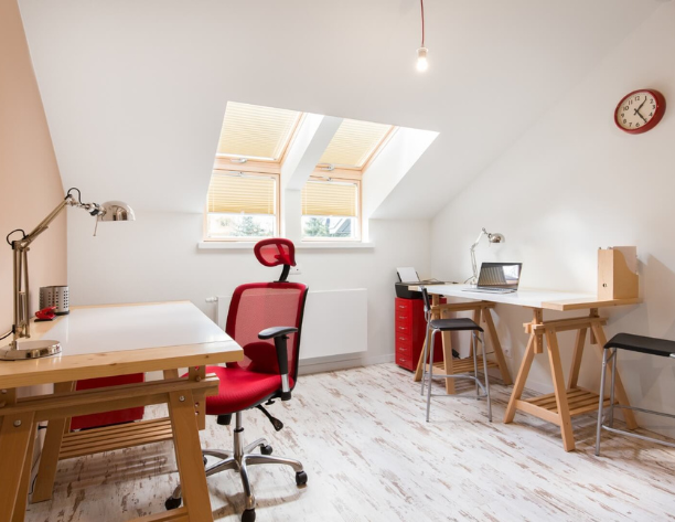 V súčasnosti je práca z domu veľmi populárna a mnoho ľudí má možnosť pracovať aspoň čiastočne na „home office“. Podkrovie môže byť ideálnym miestom na vytvorenie tichej a oddelenej kancelárskej zóny. S dostatkom prirodzeného svetla a pokojom, ktorý je od zvyšku domu oddelený, poskytuje podkrovie perfektné prostredie pre produktivitu.